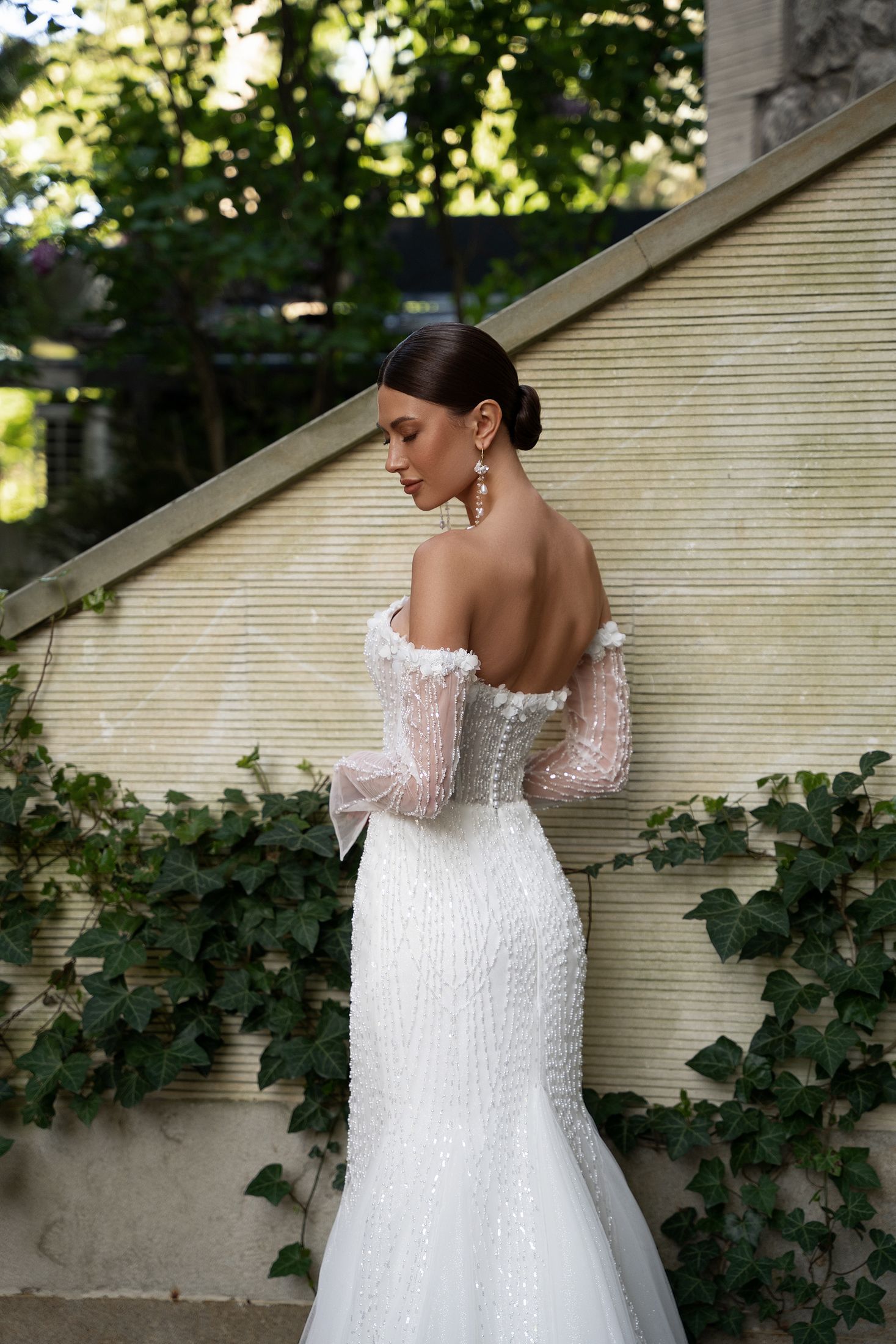 Fitted skirt, with a train