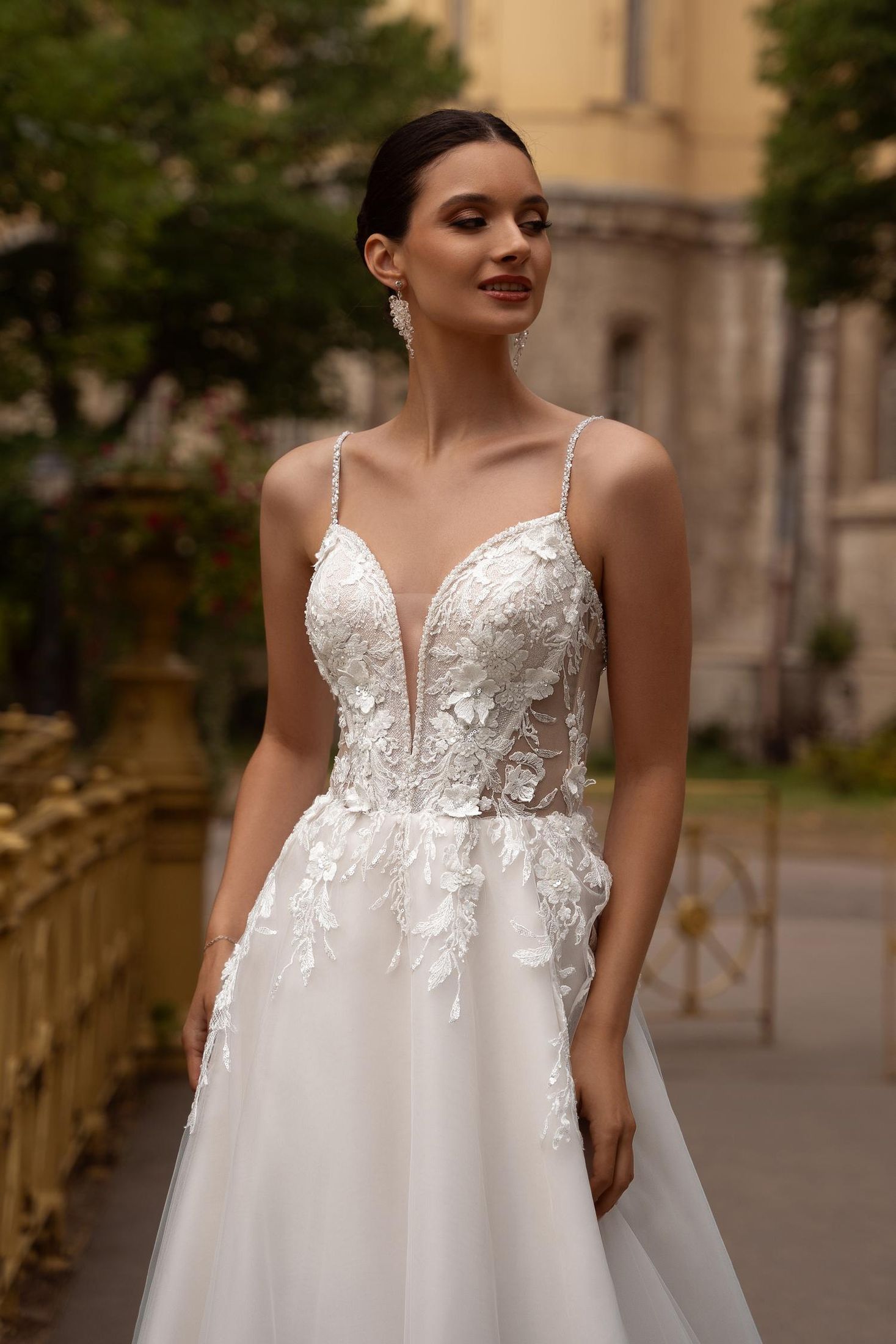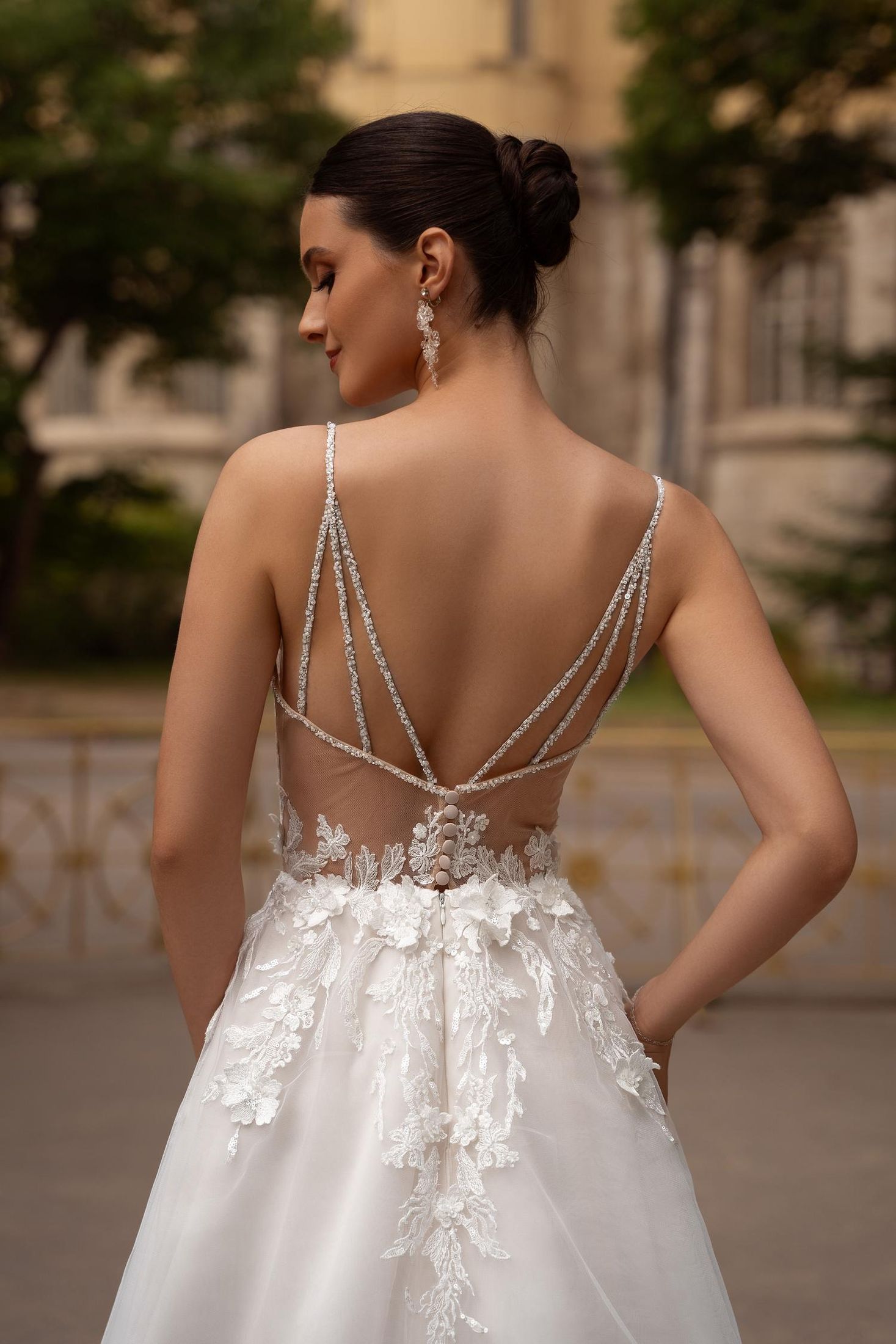 NECKLINE: Open neckline with V-neck and straps, V-neck on the back