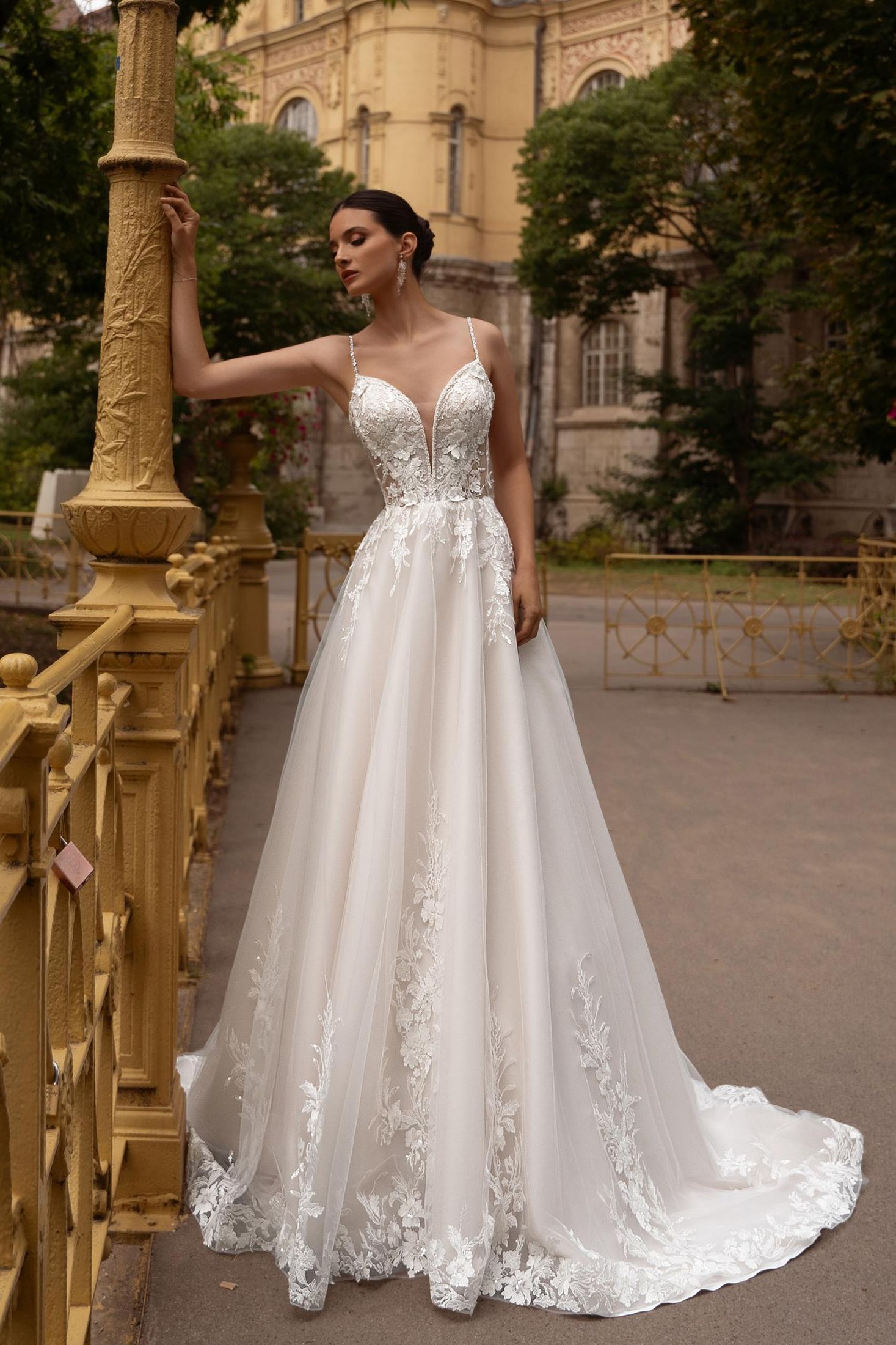 SKIRT: Long, with a train