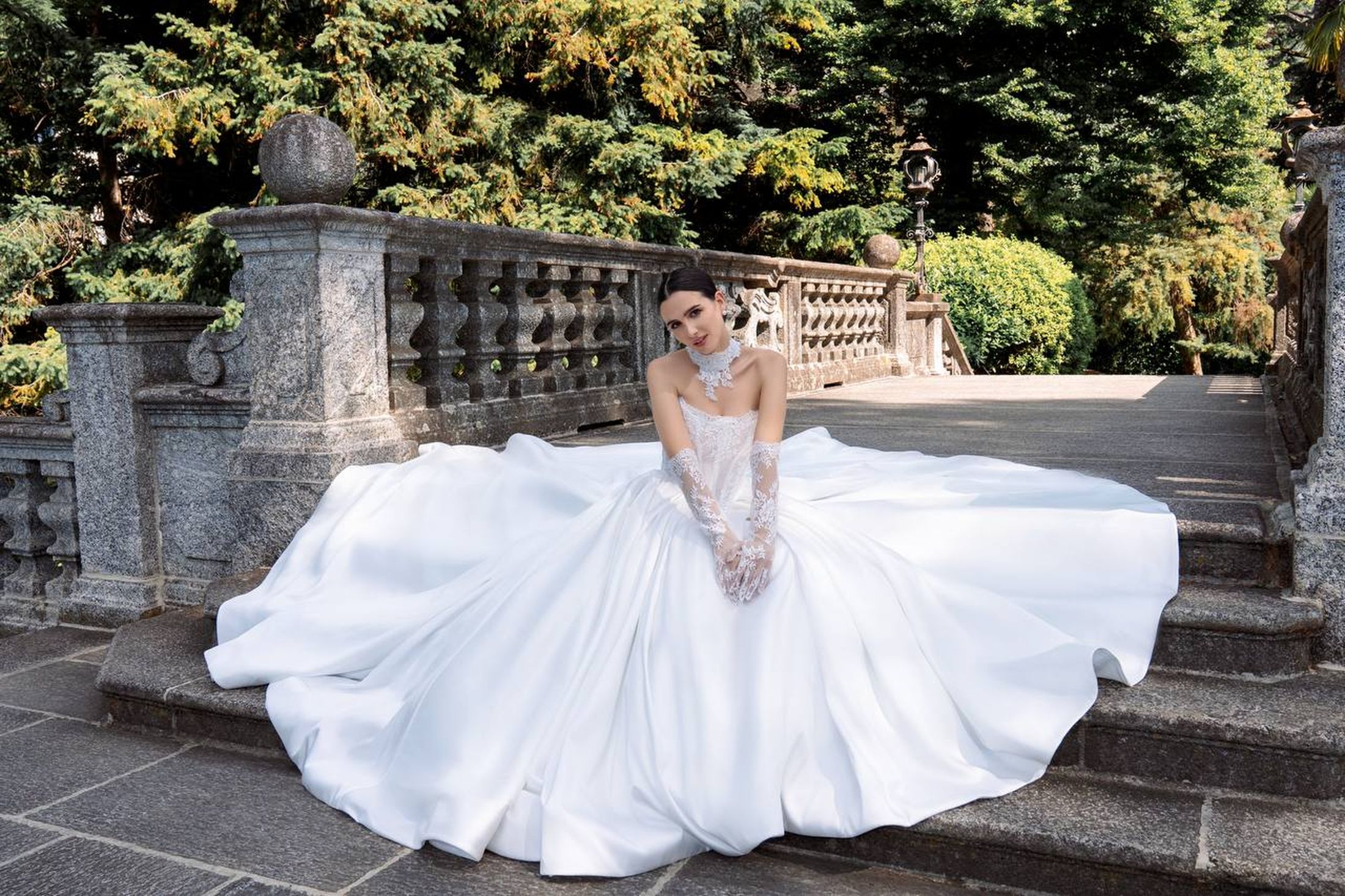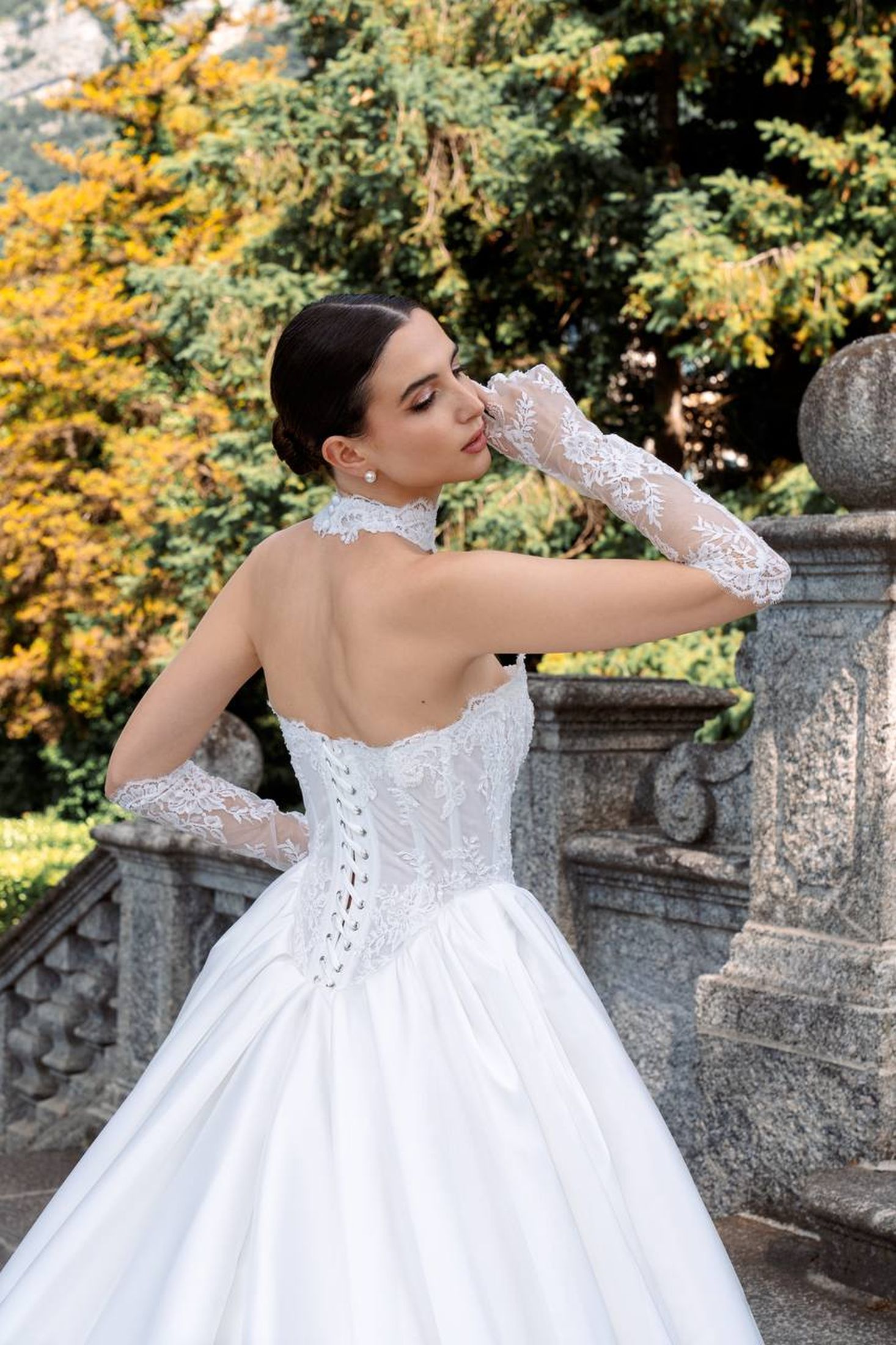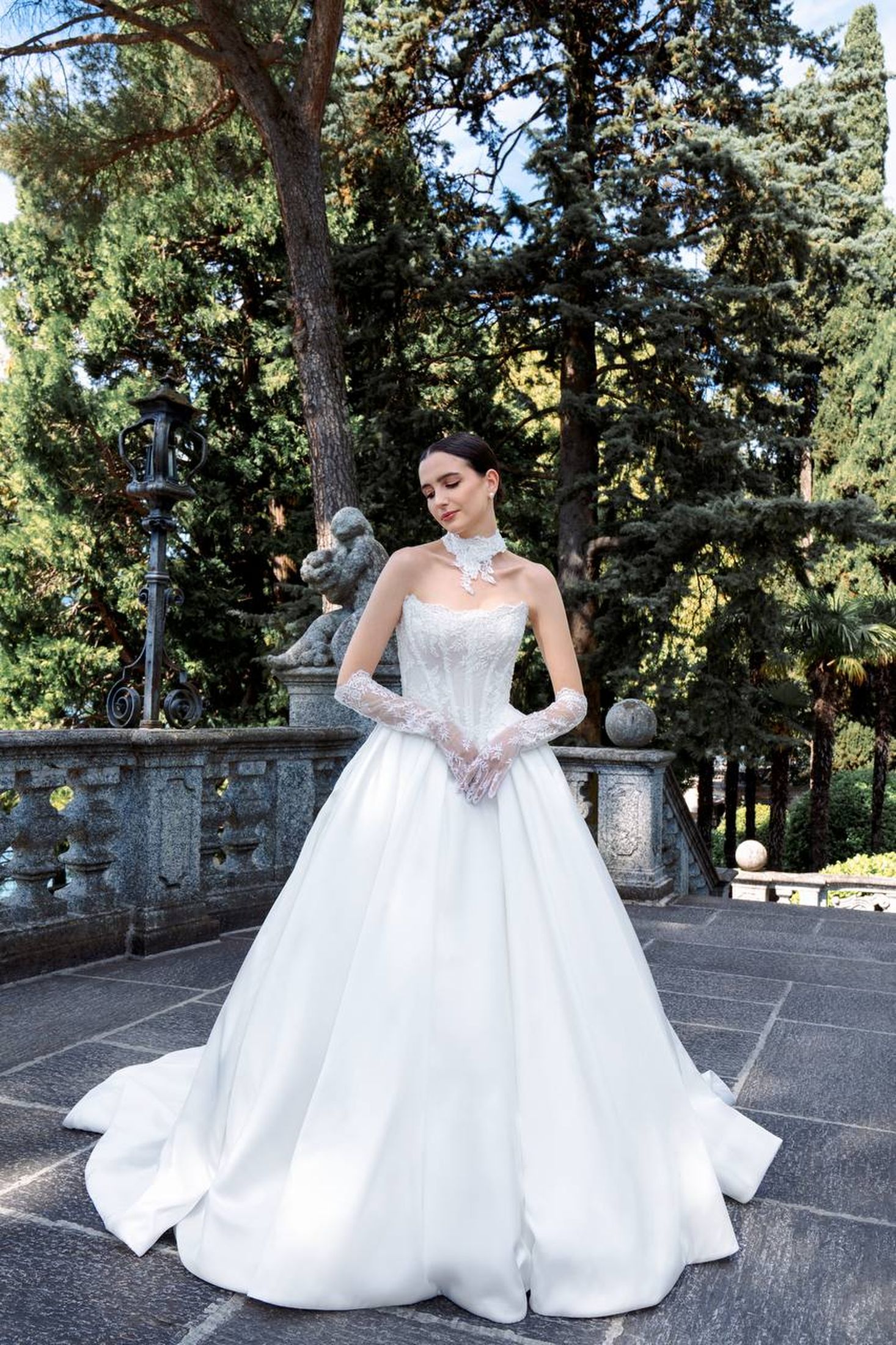 Natural lace; removable mikado cape; natural lace gloves